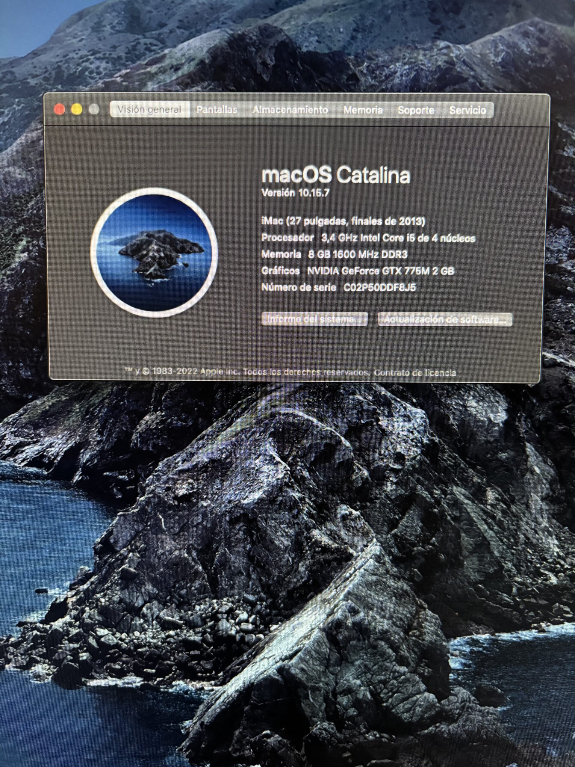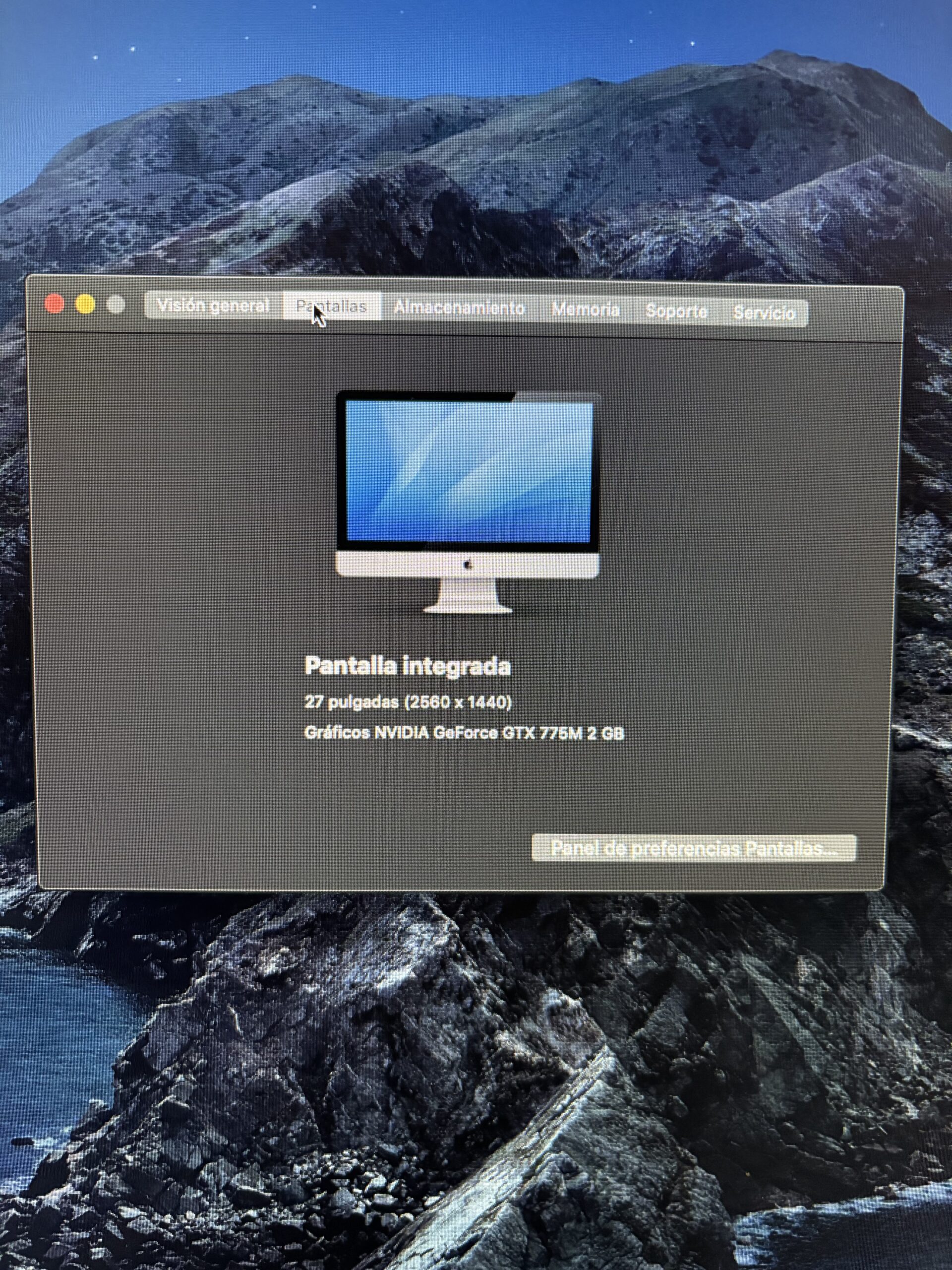 iMac de 27 pulgadas comprado nuevo en 2014, unico propietario, yo lo usaba en Windows con una particion, esta reseteado en modo fabrica, 1TB de disco duro, procesador intel core i5, de 4 nucleos Memoria de 8 gigas ampliable a 16, graficos NVIDIA GeForce GTX 775M de 2 GB. Se ha dejado sin archivos en informatica Proyect. Se puede verificar su estado en vivo o en tu tienda de informatica de confianza. NO SE ENVIA, SE ENTREGA EN MANO.